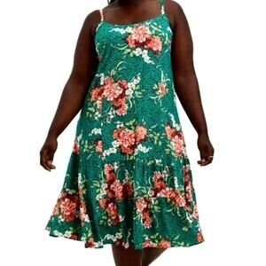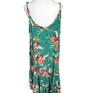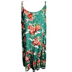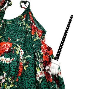 TORRID 3X Green Floral Leopard Print Midi Dress Sleeveless Tiered Ruffle Pockets