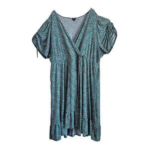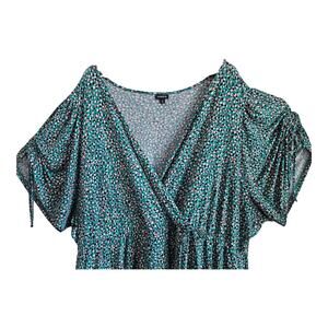 TORRID 6 = Women's Plus Size 30 Dress - Midi, Crossover V-Neck, Green, Pink, Black, Pebbles Pattern, Pockets, Short Ruched Drawstring Sleeve, Faux Wrap, Elastic Waist, Jersey, 95% Polyester, 5% Spandex