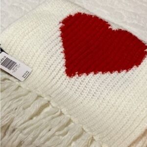 TORRIDS Beautiful extra long Ivory Knit scarf with the large Red Heart. Can be worn as a wrap or scarf❤️❤️Just in time for Valentine’s Day. New with tags attached. 76% Acrylic 22% Nylon 2% Spandex Machine Wash