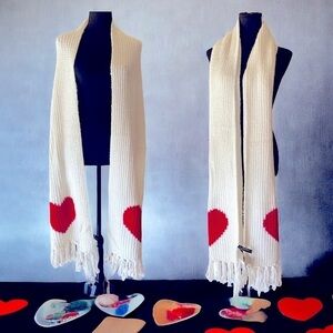 TORRID 76” Long Knit Scarf Shawl Women’s Ivory/Red Valentines Heart L 76”NWT