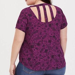TORRID Abbey Purple Paisley Cage Back Top Size 3x