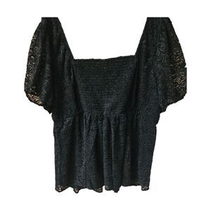TORRID BLACK Babydoll Short Sleeve Chenille Lace SquareβNeck Blouse Plus Siz2X