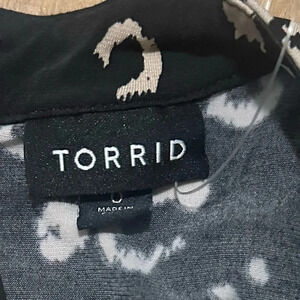 TORRID BLACK / PINK CHEETAH LEOPARD PRINT BLOUSE TANK SIZE 0 KEYHOLE BACK BUTTON