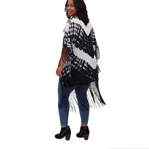 TORRID BLACK TIE-DYE CREPE FRINGE KIMONO