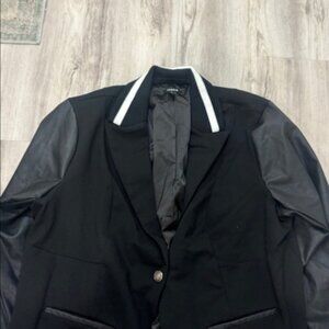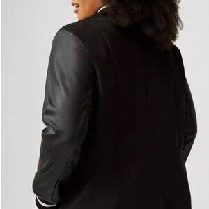 TORRID BLACK Women's Jacket with Leather Sleeves VARSITY BLAZER SIZE 2XL GREAT CONDITION, NO FLAWS Elevate your style with this chic black jacket featuring sleek leather sleeves. Perfect for any occasion.