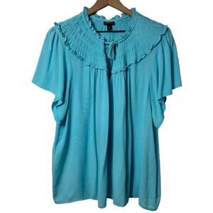 TORRID BLUE GAUZE SMOCKED YOKE RUFFLE WOMEN PLUS SIZE TOP 2 OR 2X
