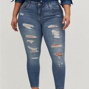 TORRID BOMBSHELL SKINNY PREMIUM STRETCH HIGH-RISE DESTRUCTED JEANS