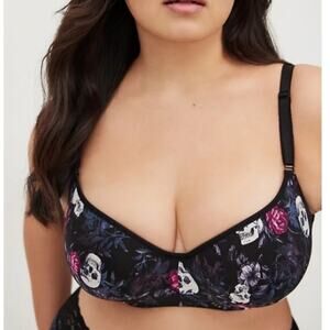 TORRID BRA 42H BALCONETTE BRA LIGHTLY LINED SKULL ROSE PRINT 360° BACK SMOOTHING