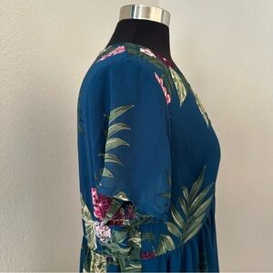 TORRID Babydoll Chiffon Button-Front Floral Teal Tunic Top