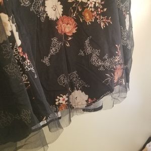 TORRID Black Floral Skirt with Mesh Overlay Size 3