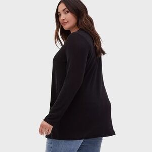 Soft and lightweight, this knit cardigan has an open front and reverse hi-lo hem that lends movement to an essential third layer.