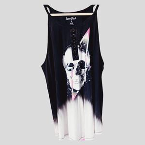 TORRID Black & Ivory Tie Dye skull high Neck Tank Top