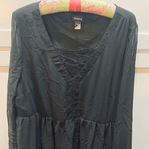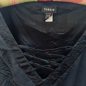 TORRID Black Lace Inset Bell Sleeve Babydoll Sheet Chiffon Top Size 0