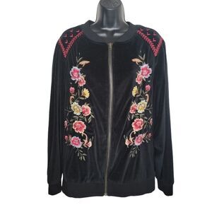 Excellent like new condition. Women's plus size TORRID Black Velour Velvet Floral Embroidered Beaded Bomber Jacket 4/4x.