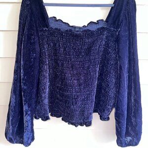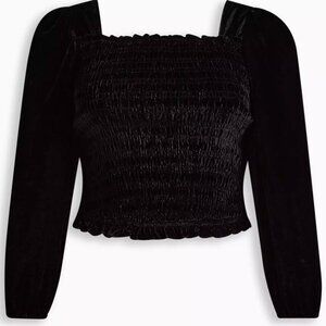 TORRID Black Velvet Smocked Blouson Sleeve Crop Top