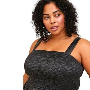 TORRID BlackβPeplum Fauxe Leather Crop Smocked Tank Top Classic Preppy 1X