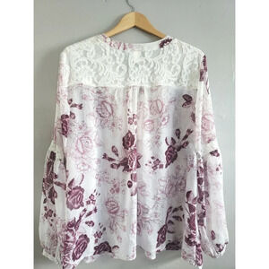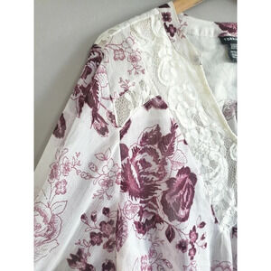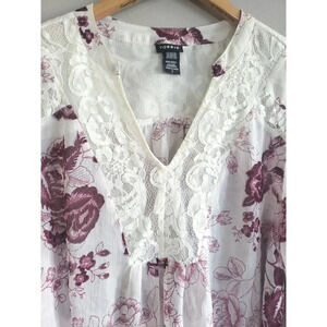 TORRID Blouse Cream Purple Floral Print Chiffon Lace Inset Cotton Womens 2X