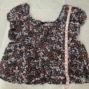 TORRID Blouse Floral Women’s Babydoll Top With Cutouts Size 3X Flutter Sleeve