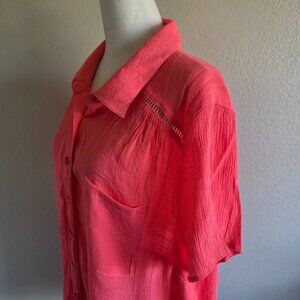 TORRID Blouse Top Shirt Bright Pink Crinkle Short Sleeve Button Plus Size 2 2X