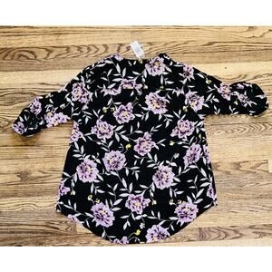 TORRID Blouse Women Black Purple Floral Roll Up Sleeve Harper Size 2xl Tunic NEW