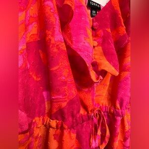 TORRID CHIFFON CLIP DOT RUFFLE TIE WAIST TANK. Size 0Torrid- large.