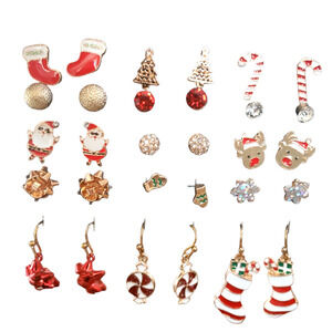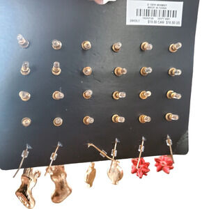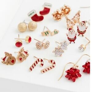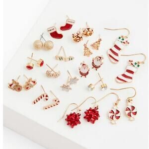 TORRID CHRISTMAS GOLD-TONE RED & WHITE HOLIDAY EARRINGS SET - SET OF 15