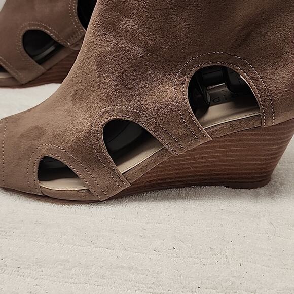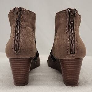 TORRID CUTOUT PEEP-TOE WEDGES TAN SUEDE LADIES SIZE 8WW VGUC