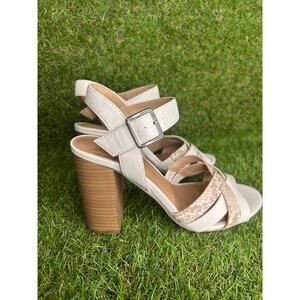 TORRID Caged Front Stacked Heel Sandals Bone/Snakeskin 9W