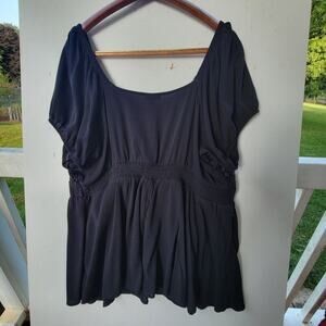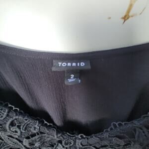 The TORRID Crinkle Gauze With Lace Puff Short Sleeve Blouse in size 2XL is a stylish and comfortable addition to any woman's wardrobe. This plus-size blouse features a solid black color with puff sleeves, giving it a babydoll style. Made from lightweight and breathable fabric, it is perfect for warm weather and can be dressed up or down for any occasion. The lace detail adds a touch of femininity, making it a versatile and chic option for any woman looking for a trendy top.