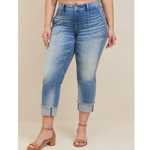 TORRID Cropped Botfriend Mid Rise Blue Denim Stretch Size 26 Straight Leg Jeans
