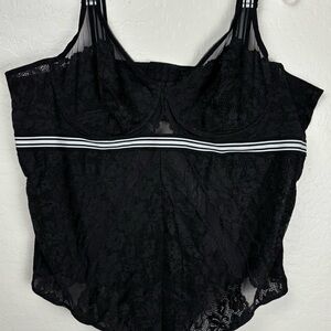 TORRID Curve Lingerie Bodysuit Black Ribbon Lace Wired Bra Snap Crotch 4X 0117
