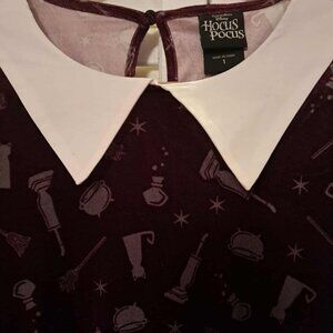 TORRID DISNEY HOCUS POCUS VELVET DARK PURPLE DRESS WHITE COLLAR 1X NWOT
