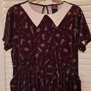TORRID DISNEY HOCUS POCUS VELVET DARK PURPLE DRESS WHITE COLLAR
