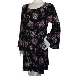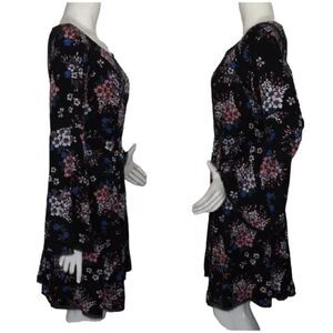 TORRID Dress, 12, Black Floral, Flounce/Trumpet Sleeve, Scoop neck, Tie waist
