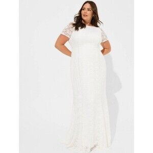 TORRID EVER AFTER SIZE 20 NEW I ORY LACE FIT & FLARE SHORT SLEEVE WEDDING DRESS