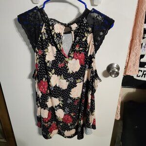 TORRID FLORAL AND LACE SHORT SLEEVE TOP SZ 3