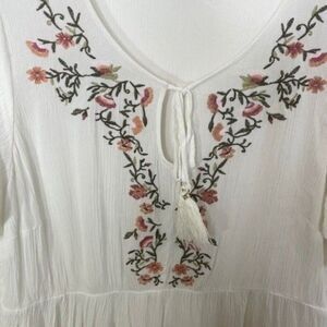 TORRID WHITE FLORAL EMBROIDERED CREPE BLOUSE
