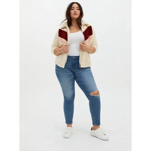 TORRID Faux Fur Sherpa Zip Up Jacket Cream Red Chevron Size 1X