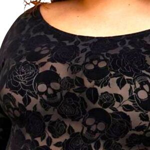 NWT (New with tags) Plus Size Full Length Black Floral Rose, Lace Flocked Skull Catsuit.