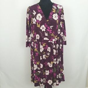 TORRID Fuschia Pink Floral Side-Draped 3/4 Sleeve Dress Size 2 (2X) #011