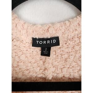 TORRID Fuzzy Eyelash Cardigan Open Front Sweater Light Pink Stretch Size 2 2X