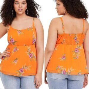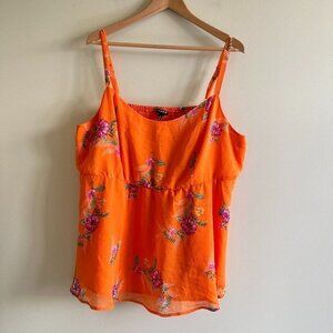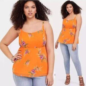 TORRID GOLDEN ORANGE FLORAL CHIFFON BABYDOLL CAMI TOP WOMENS SIZE 3 3X 22 24