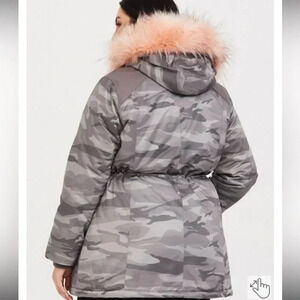 TORRID GRAY CAMO TWILL FUR LINED PARKA WINTER JACKET 00