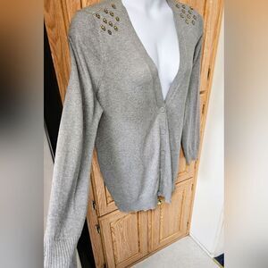 Your Purchasing A New with Tags/Not Used Plus Size Gray V-Neck Studio Knit Vintage Skull detail Cardigan Size 2X No damage! Lint rolled and ironed, then bagged to ship. Total awesome & Flawless!