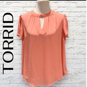 TORRID Georgette Keyhole Top Blouse with Flutter Sleeves - Peach - Size 1
