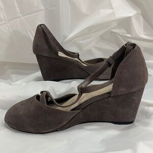 TORRID Gray Leather Suede Mary Jane Mini Wedge w Buckle Strap Size 13W