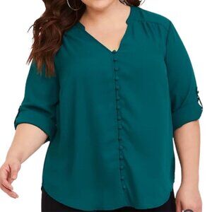 TORRID Harper Emerald Button-Front Georgette Roll-Tab Sleeve Shirt Size 3X