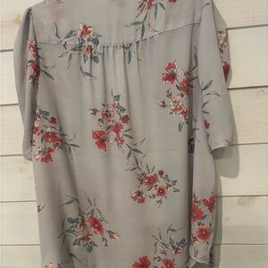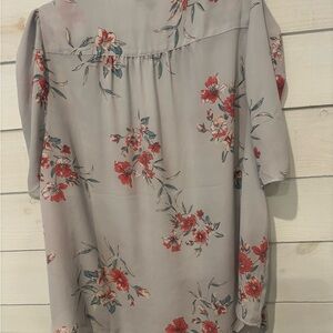 Torrid Harper Plus size floral top . Elegant gray blouse with a vibrant floral design. Perfect for any occasion.