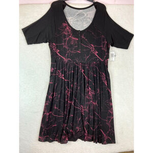TORRID Henley Skater Dress Super Soft Black Mulberry Marble Crew Neck Size 3X
