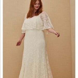 TORRID IVORY LACE CAPELET WEDDING DRESS